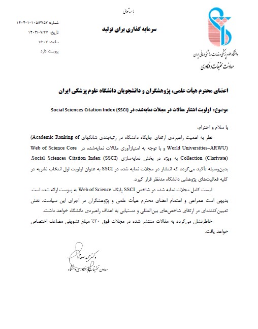 اولویت انتشار مقالات در مجلات نمایهشده در Social Sciences Citation Index (SSCI)